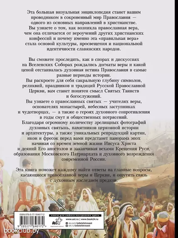 Православие — не просто религия, это ожившие в величайших памятниках история, культура и искусство, это многочисленные яркие свидетельства силы духа и чудес, совершенных по молитвам к Богу. Вот уже более полутора тысячелетий православная вера объединяет народы, вдохновляет подвижников и формирует национальные традиции. Но главное — это направление христианства проповедует истинное учение о Боге. В данной энциклопедии рассказывается о том, как возникло Православие и чем оно отличается от других христианских конфессий, представлены основные периоды развития вероучения, названного "правильной верой". Листая страницы этой книги с множеством зрелищных иллюстраций, вы погрузитесь во времена земной жизни Иисуса Христа и деяний Его апостолов, первых Поместных Церквей и Вселенских Соборов.