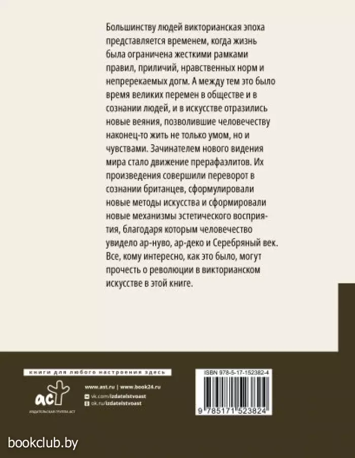 Большинству людей Викторианская эпоха представляется временем, когда жизнь была ограничена жесткими рамками правил, приличий, нравственных норм и непререкаемых догм. А между тем это было время великих перемен в обществе и в сознании людей, и в искусстве отразились новые веяния, позволившие человечеству наконец-то жить не только умом, но и чувствами. Зачинателем нового видения мира стало движение прерафаэлитов. Их произведения совершили переворот в сознании британцев, сформулировали новые методы искусства и сформировали новые механизмы эстетического восприятия, благодаря которым человечество увидело Ар-нуво, Ар-деко и Серебряный век. Все, кому интересно, как это было, могут прочесть о революции в викторианском искусстве в этой книге.