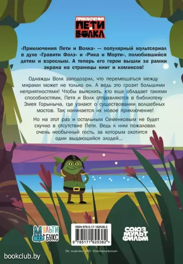 Однажды Волк заподозрил, что перемещаться между мирами может не только он. А ведь это грозит большими неприятностями! Чтобы выяснить, кто еще обладает такими способностями, Петя и Волк отправляются в библиотеку Змея Горыныча, где узнают о существовании волшебных мостов. Так начинается их новое приключение! Но на этот раз и остальным Семенковым не будет скучно в отсутствие Пети. Ведь к ним пожаловал очень необычный гость, за которым охотится один выдающийся злодей…