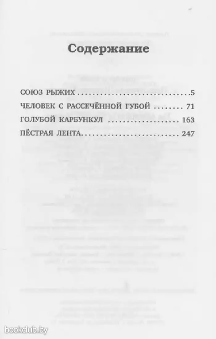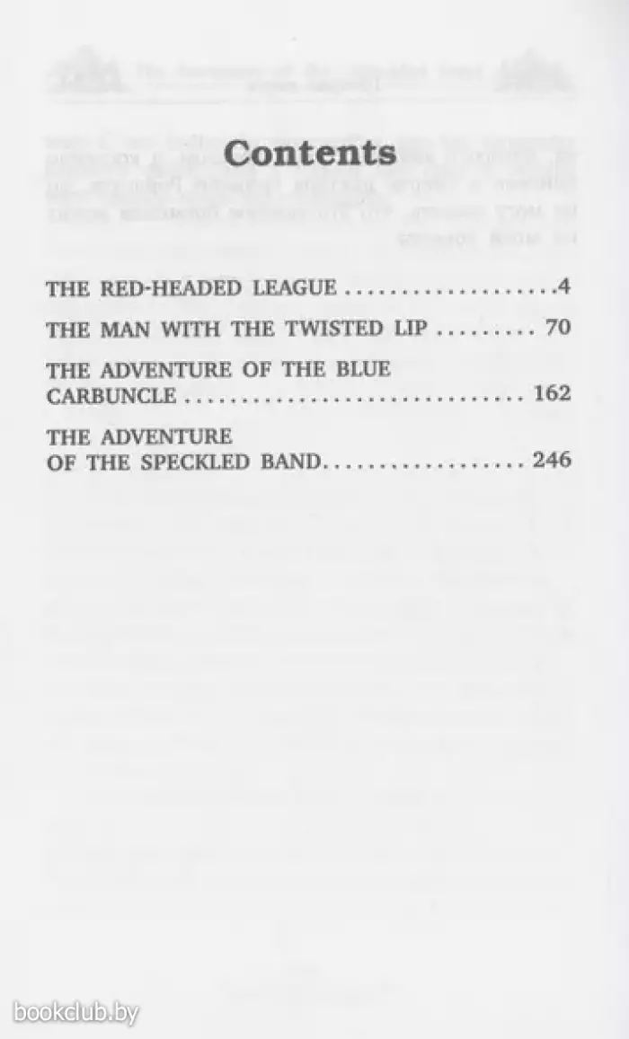 В данное издание вошли четыре увлекательные истории о приключениях самого знаменитого сыщика Шерлока Холмса: "Союз рыжих", "Человек с рассечённой губой", "Голубой карбункул" и "Пёстрая лента". Тексты произведений адаптированы и снабжены параллельным переводом на русский язык.