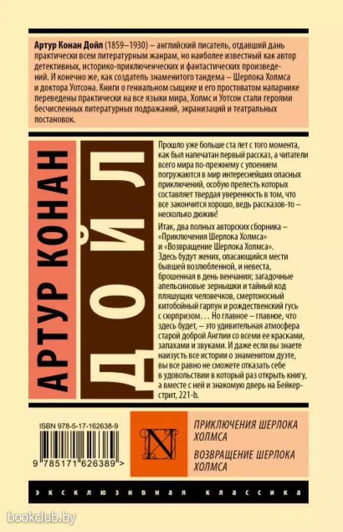 Итак, два полных авторских сборника – "Приключения Шерлока Холмса" и "Возвращение Шерлока Холмса". Здесь будут жених, опасающийся мести бывшей возлюбленной, и невеста, брошенная в день венчания, загадочные апельсиновые зернышки и тайный код пляшущих человечков, смертоносный китобойный гарпун и рождественский гусь с сюрпризом… Но главное – главное, что здесь будет, – это удивительная атмосфера старой доброй Англии со всеми ее красками, запахами и звуками. И даже если вы знаете наизусть все истории о знаменитом дуэте, вы все равно не сможете отказать себе в удовольствии в который раз открыть книгу, а вместе с ней – и знакомую дверь на Бейкер-стрит, 221-b.