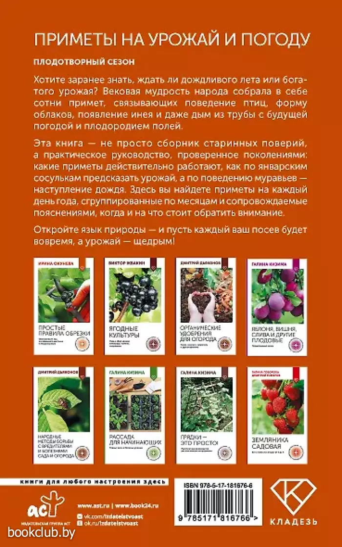 Эта книга — не просто сборник старинных поверий, а практическое руководство, проверенное поколениями: какие приметы действительно работают, как по январским сосулькам предсказать урожай, а по поведению муравьев — наступление дождя. Здесь вы найдете приметы на каждый день года, сгруппированные по месяцам и сопровождаемые пояснениями, когда и на что стоит обратить внимание.