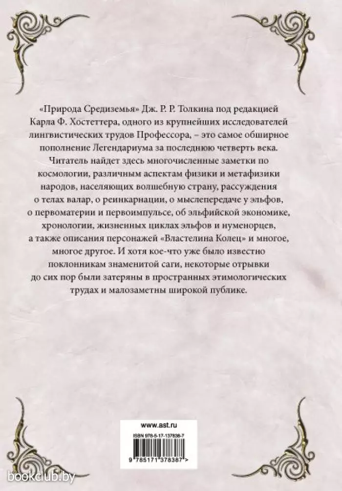 В сборнике «Природа Средиземья», включившем в себя многочисленные эссе, статьи и некоторые фрагменты неоконченных историй Дж. Р. Р. Толкина, наконец-то освещаются самые неожиданные, но такие важные вопросы мироустройства Арды. Запасайтесь чаем из листьев ацеласа и читайте «Природу Средиземья» с удовольствием!