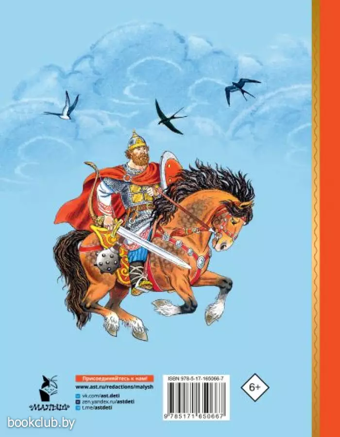 В книгу вошли знаменитые былины о великих русских богатырях в пересказе известной фольклористки И.В. Карнауховой. Илья Муромец, Алёша Попович, Добрыня Никитич, Святогор-богатырь, Вольга Всеславьевич — об этих богатырях знает и стар и млад. Они очень сильны, за богатством не гонятся, на пирах животы не растят, а защищают русскую землю для чести и славы богатырской. Есть в этой книге и знаменитая былина о Василисе Микулишне — богатырше, которая хитростью вызволила своего мужа из заточения. Иллюстрации С. Бордюга и Н. Трепенок.