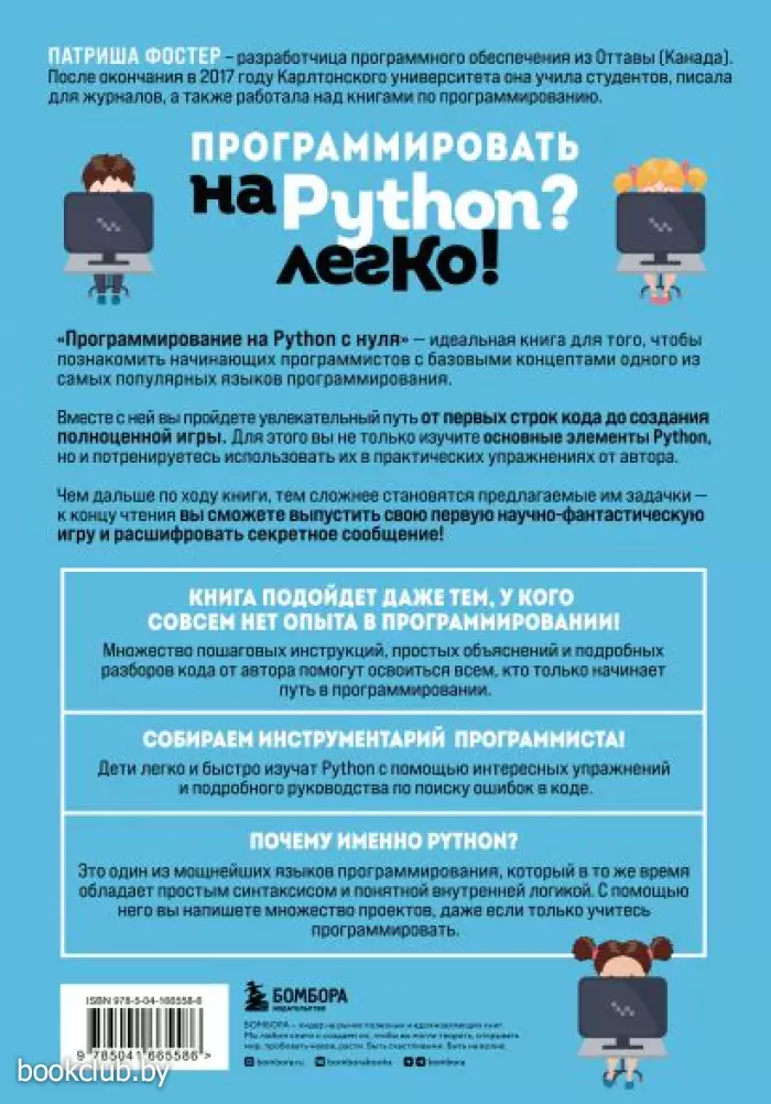 Дети легко и быстро изучат Python с помощью интересных упражнений и подробного руководства по поиску ошибок в коде.