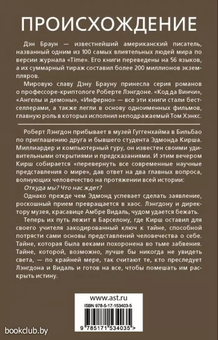 Пятая книга о расследовании профессора Роберта Лэнгдона от автора бестселлера «Код Да Винчи» — Дэна Брауна.