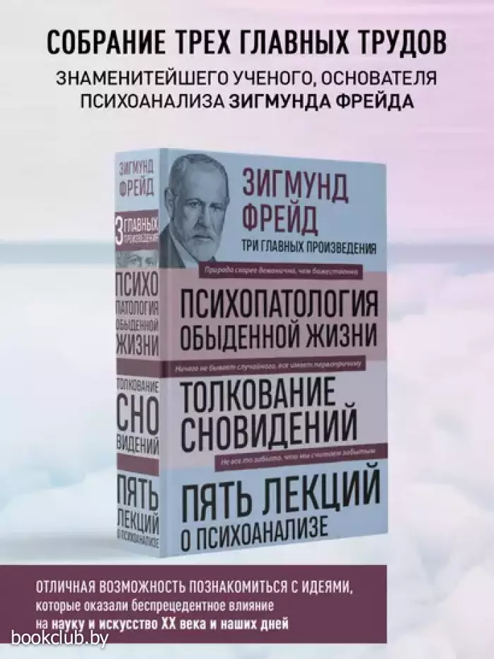 В книге собраны самые яркие и популярные труды философа: «Психопатология обыденной жизни», «Толкование сновидений» и «Пять лекций о психоанализе». Философские трактаты как нельзя лучше отражают позицию автора и дарят читателю возможность оценить творческое наследие Зигмунда Фрейда.