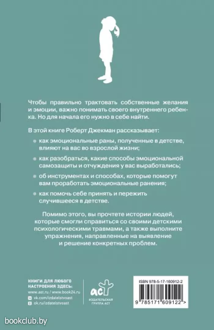 Помимо этого, вы прочтете истории людей, которые смогли справиться со своими детскими психологическими травмами, а также выполните упражнения, направленные на выявление и решение конкретных проблем.