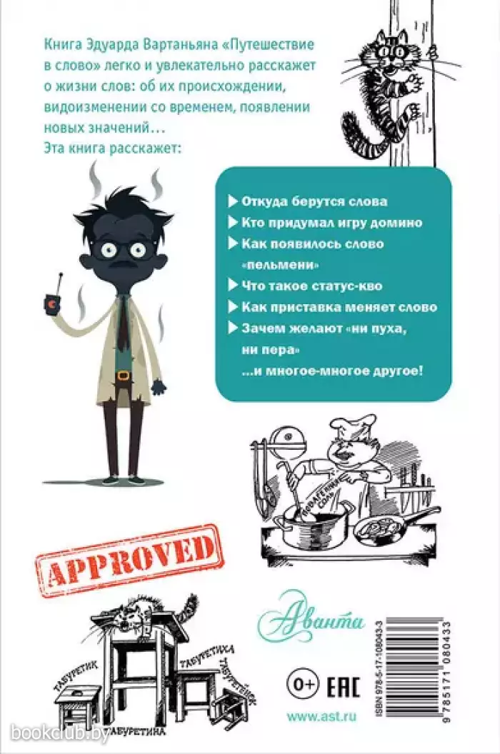 «Путешествие в слово» – это необыкновенно увлекательная книга Эдуарда Вартаньяна, рассказывающая о жизни слов – об их происхождении (этимологии), видоизменении со временем, появлении новых значений… Ведь русский язык, на котором говорили сто или двести лет назад, здорово отличается от современного. Как возникают новые слова? Откуда берутся заимствования? Что такое фразеологизмы и зачем желают «ни пуха, ни пера»? Кто придумал слово «миллион» и почему пельмени так называются? Обо всём этом и многом другом нам поведает автор. .Для среднего школьного возраста.