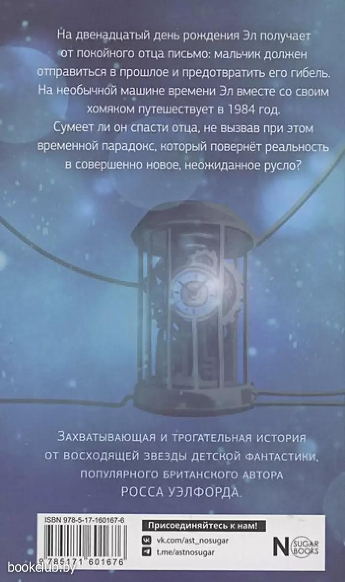 На двенадцатый день рождения Ал получает от покойного отца письмо: мальчик должен отправиться в прошлое и предотвратить его гибель. На необычной машине времени Ал вместе со своим хомяком путешествует в 1984 год. Сумеет ли он спасти отца, не вызвав при этом временной парадокс, который повернёт реальность в совершенно новое, неожиданное русло? Захватывающая и трогательная история от восходящей звезды подростковой фантастики, популярного британского автора Росса Уэлфорда.