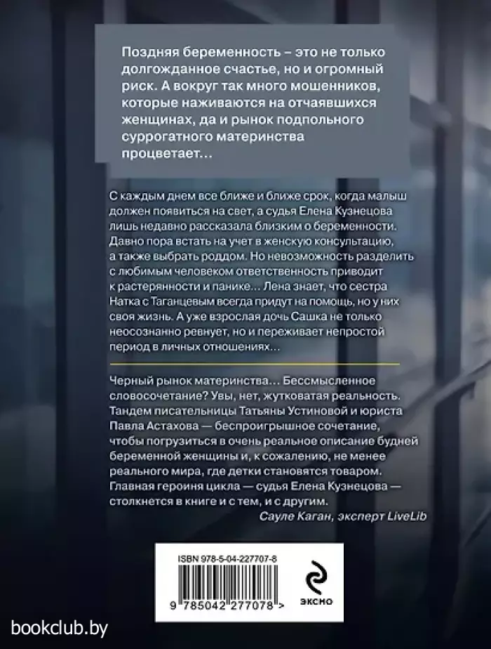 С каждым днем все ближе и ближе срок, когда малыш должен появиться на свет, а судья Елена Кузнецова лишь недавно рассказала близким о беременности. Давно пора встать на учет в женскую консультацию, а также выбрать роддом. Но невозможность разделить с любимым человеком ответственность приводит к растерянности и панике… Лена знает, что сестра Натка с Таганцевым всегда придут на помощь, но у них своя жизнь. А уже взрослая дочь Сашка не только неосознанно ревнует, но и переживает непростой период в личных отношениях…