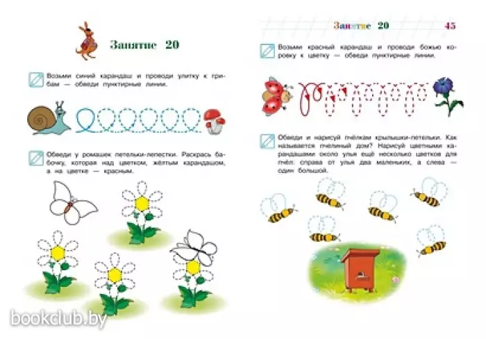 Задания составлены с учетом возраста ребенка и расположены в определенной логической последовательности. Занимаясь, малыш будет штриховать и обводить по контуру предметы, раскрашивать и дорисовывать их; познакомится с разнообразными типами линий, научится ориентироваться на листе бумаги по плану, рисовать геометрические фигуры, писать буквы и цифры. Помимо этого, в пособие включены упражнения на внимание и память, увлекательные лабиринты, а также задания со счетными палочками, способствующие выработке точности движений рук, развитию глазомера, творческого воображения, фантазии, усидчивости.
