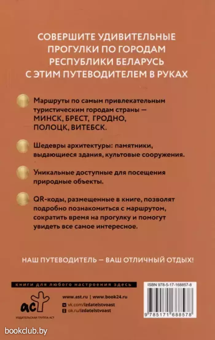 Путеводитель рассчитан на самостоятельных путешественников, готовых ближе познакомиться с удивительными и разнообразными городами Республики Беларусь, сохранившими свою самобытность. На страницах этой книги вы найдете описания интереснейших маршрутов по Бресту, Гродно, Минску, Несвижу, Миру, Полоцку, Витебску, Могилеву. Гомелю. Чтобы предложенные экскурсии были познавательными, в статьях приводятся исторические данные, содержатся практические советы, а предложенные qr-коды, позволяющие перейти на электронные карты, значительно облегчат ориентирование. Наша книга поможет и подскажет куда идти и что выбрать. С нашим путеводителем за меньшее количество времени вы увидите больше