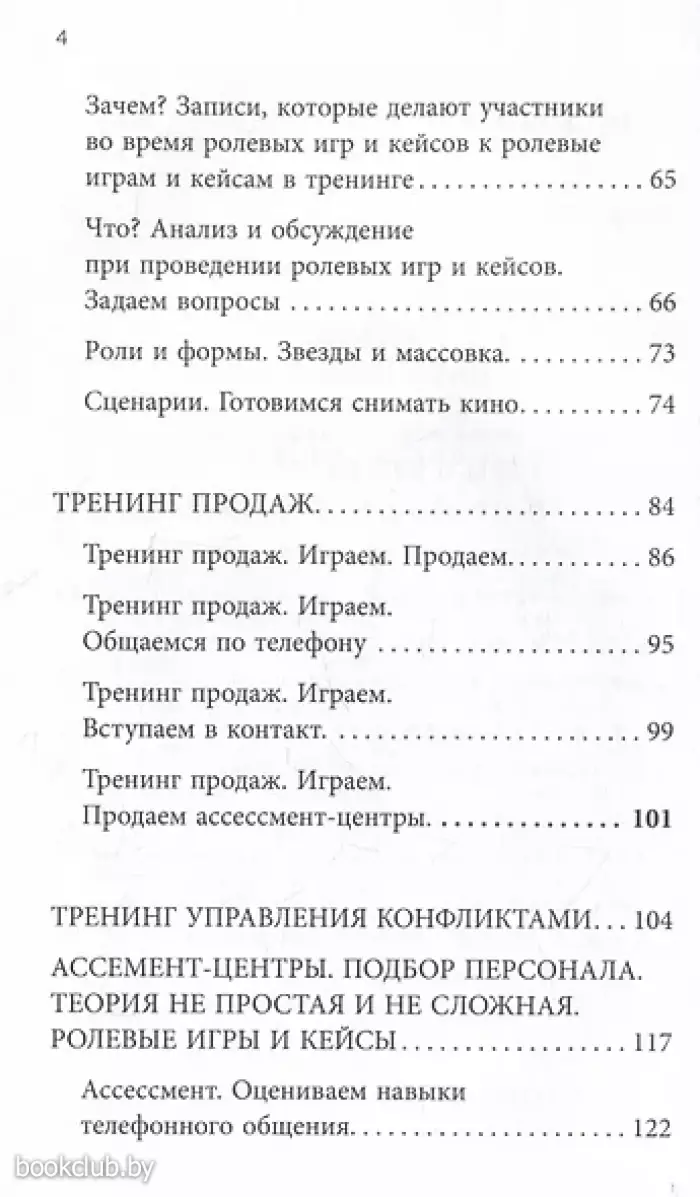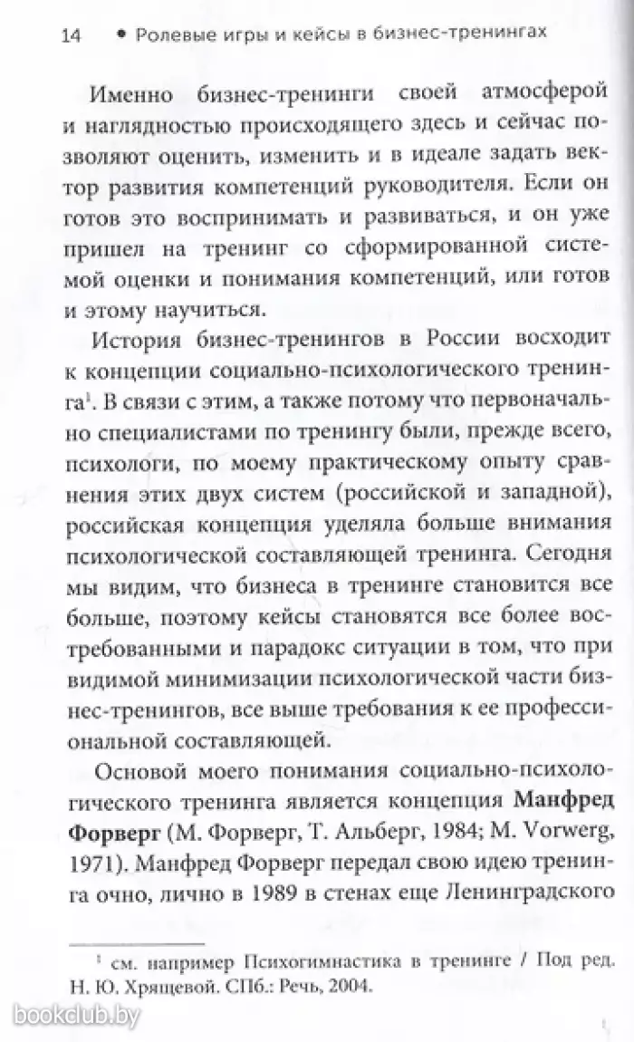 В книге «Ролевые игры и кейсы в бизнес-тренингах» описана методология использования ролевых игр и кейсов в тренингах, представлены ситуации по различным направлениям бизнес-обучения: управление персоналом, управленческие навыки для топ-менеджеров, управление изменениями и конфликтами, продажи, переговоры, материальная и нематериальная мотивация, оценка сотрудников и многие другие.
