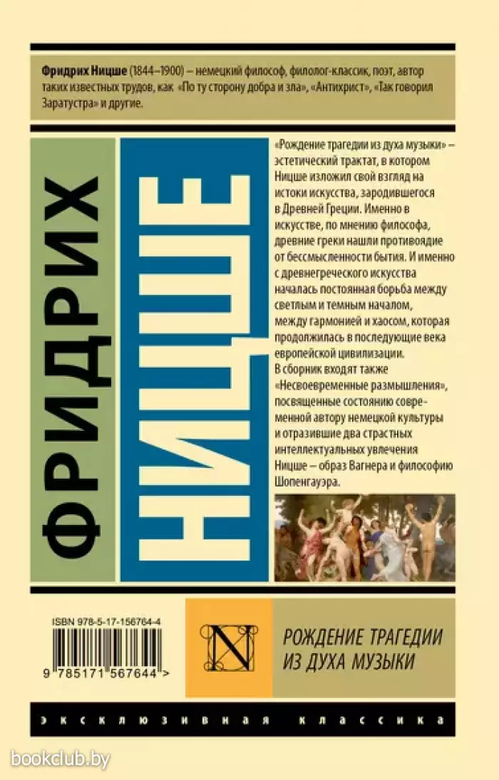 "Рождение трагедии из духа музыки" - эстетический трактат, в котором Ницше изложил свой взгляд на истоки искусства, зародившегося в Древней Греции. Именно в искусстве, по мнению философа, древние греки нашли противоядие от бессмысленности бытия. И именно с древнегреческого искусства началась постоянная борьба между светлым и темным началом, между гармонией и хаосом, которая продолжилась в последующие века европейской цивилизации.