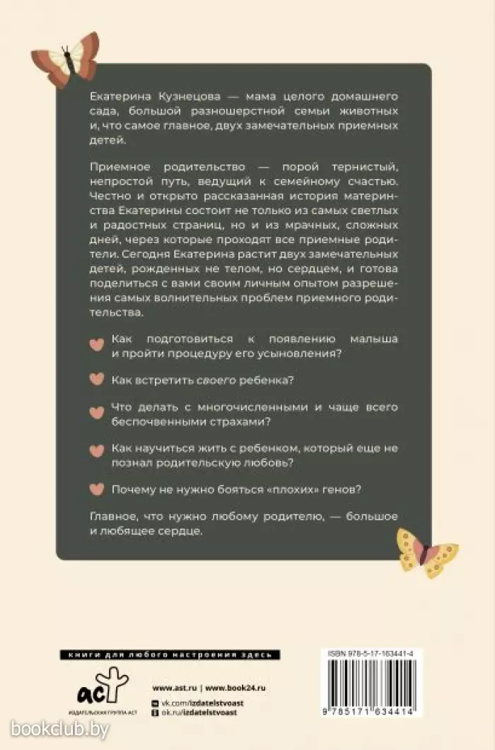 Приемное родительство — порой тернистый, непростой путь, ведущий к семейному счастью. Честно и открыто рассказанная история материнства Екатерины состоит не только из самых светлых и радостных страниц, но и из мрачных, сложных дней, через которые проходят все приемные родители. Сегодня Екатерина растит двух замечательных детей, рожденных не телом, но сердцем, и готова поделиться с вами своим личным опытом разрешения самых волнительных проблем приемного родительства.