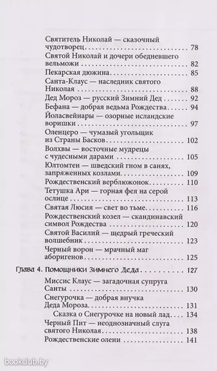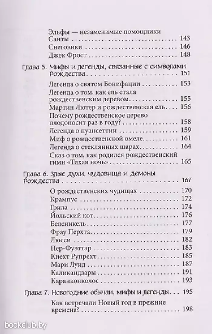 Вы узнаете, как ель стала символом Рождества, а омела и остролист — неизменными атрибутами праздника, кто еще, согласно народным легендам, пришел поклониться младенцу Христу помимо трех волхвов с дарами и как отмечали и продолжают отмечать зимние праздники по всему миру. А еще познакомитесь с добрыми зимними волшебниками со всего света: русским Дедом Морозом, американским Санта-Клаусом, баскским Оленцеро, потомком древних великанов, итальянцами Бефаной и Баббо Натале, французом Пер-Ноэлем и шведским рождественским гномом Юлтомтеном.