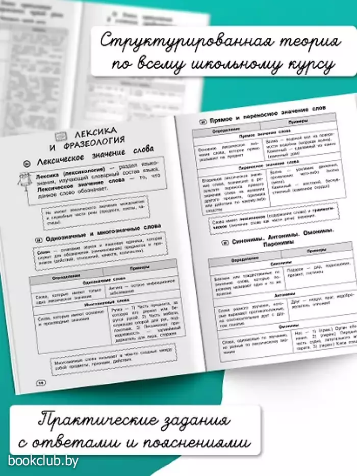 • структурированную теорию по всему школьному курсу русского языка;