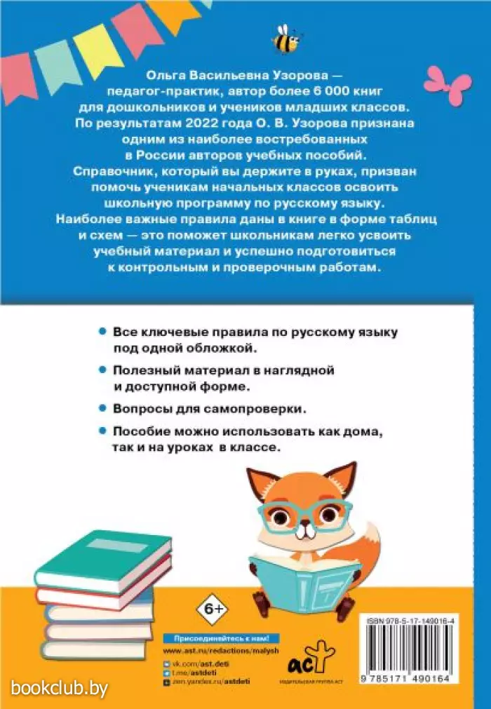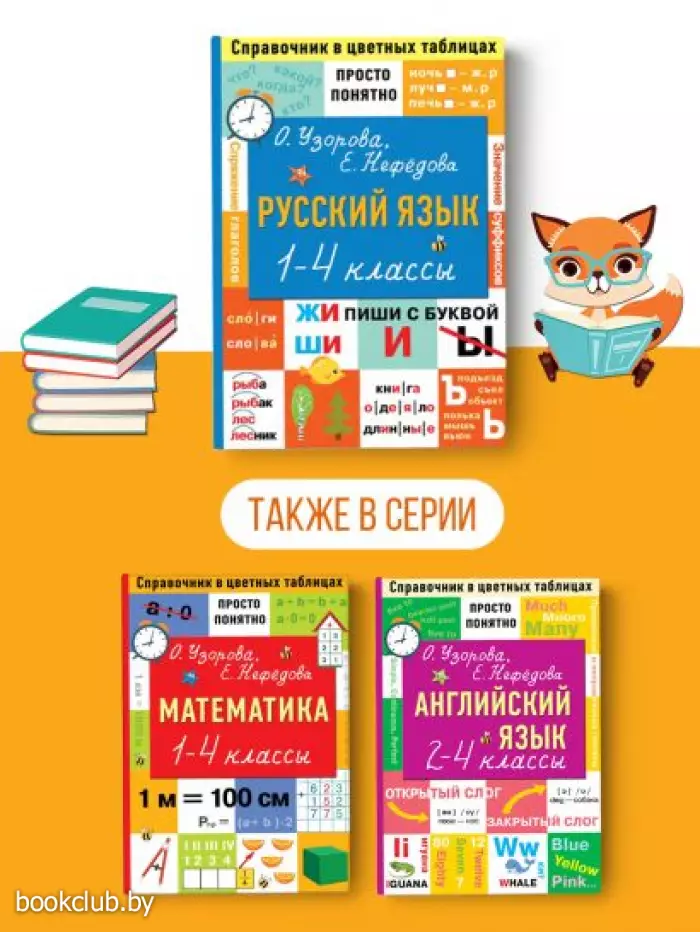«Русский язык. 1−4 классы» — это пособие по русскому языку для учащихся начальной школы, основанное на авторской методике О. В. Узоровой. Все правила по русскому языку даны в книге в виде цветных схем и таблиц. Учебный материал, представленный в табличной форме, нагляден и прост для понимания, а цветовое оформление облегчает запоминание информации и делает процесс обучения эффективным.