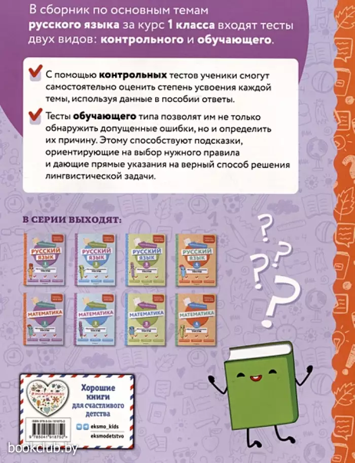 Тренажёры содержат тесты по важнейшим предметам начальной школы — математике и русскому языку. По каждой теме предлагается два вида тестов — тренировочные и проверочные. Выполняя тренировочные тесты, младшие школьники смогут не только выяснить свой уровень усвоения учебного материала, но и оперативно получить краткие и понятные разъяснения по проблемным темам. Эти подсказки ориентируют учеников на выбор нужного правила и дают прямые указания на верный способ выполнения задания. Проверочные тесты с ответами в конце книги выполняют контрольную функцию. Сборник тестов разработан с учётом всех требований ФГОС начального общего образования.