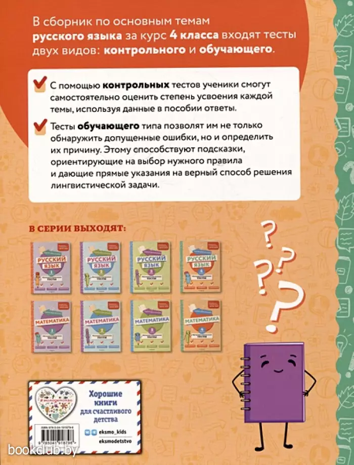 Тренажёры содержат тесты по важнейшим предметам начальной школы — математике и русскому языку. По каждой теме предлагается два вида тестов — тренировочные и проверочные. Выполняя тренировочные тесты, младшие школьники смогут не только выяснить свой уровень усвоения учебного материала, но и оперативно получить краткие и понятные разъяснения по проблемным темам. Эти подсказки ориентируют учеников на выбор нужного правила и дают прямые указания на верный способ выполнения задания. Проверочные тесты с ответами в конце книги выполняют контрольную функцию. Сборник тестов разработан с учётом всех требований ФГОС начального общего образования.