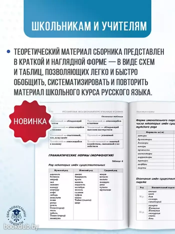 В справочнике в виде наглядных и доступных таблиц и схем представлены все основные темы школьного курса русского языка, которые проверяются на ЕГЭ и ОГЭ: