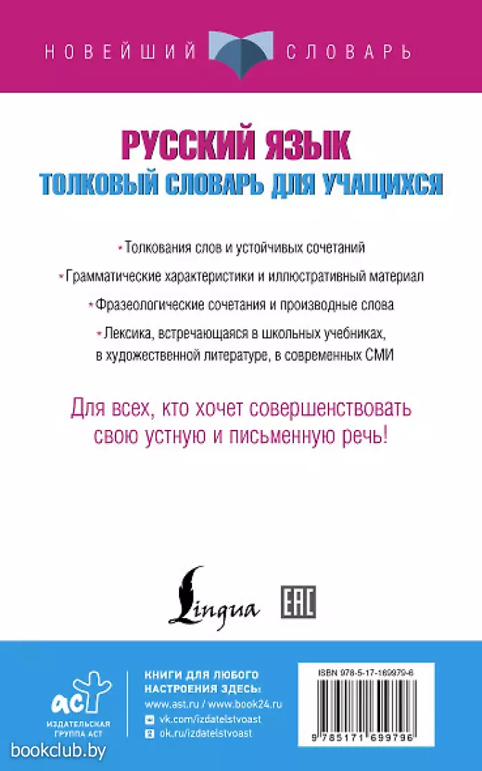Книги издательства «АСТ» из серии «Новейший словарь» - правильный выбор и отличное приобретение. Для вашего удобства при оформлении заказа по телефону назовите код товара: 412509