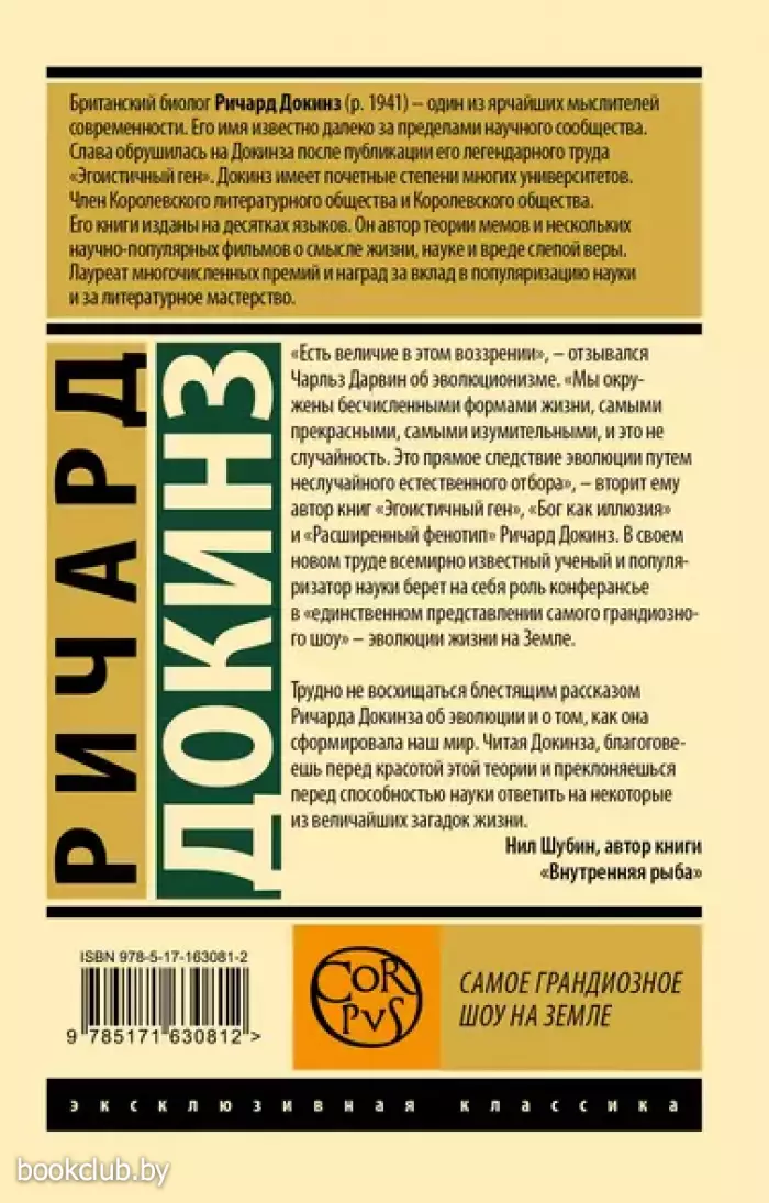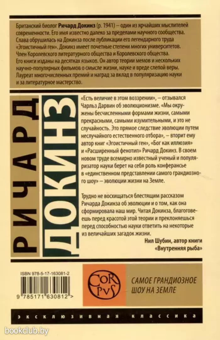 Опубликованная в 1859 году книга Чарльза Дарвина “Происхождение видов путем естественного отбора” потрясла западное общество. Однако Дарвин едва ли мог вообразить, что поднятая им буря не уляжется даже через полтора столетия. Хотя серьезные ученые и многие теологи сейчас признают правоту эволюционизма, миллионы людей продолжают его отвергать. Ричард Докинз — всемирно известный биолог, популяризатор науки, атеист, рационалист, “ротвейлер Дарвина” — берется убедить любого непредвзятого читателя в том, что эволюция — это не “просто теория”, а всесторонне подкрепленный доказательствами факт.