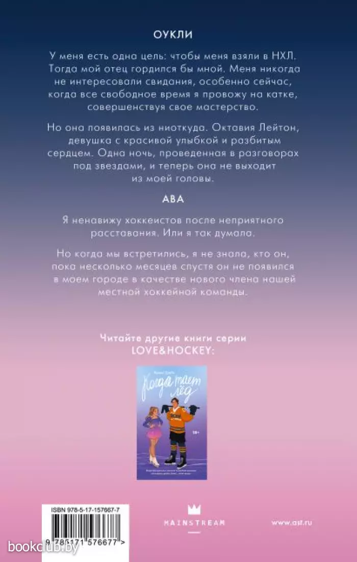 Книга от издательства «АСТ», входящая в серию «LOVE&HOCKEY», принесет массу положительных впечатлений от прочтения и займет достойное место в вашей библиотеке. Для вашего удобства при оформлении заказа по телефону назовите код товара: 198034