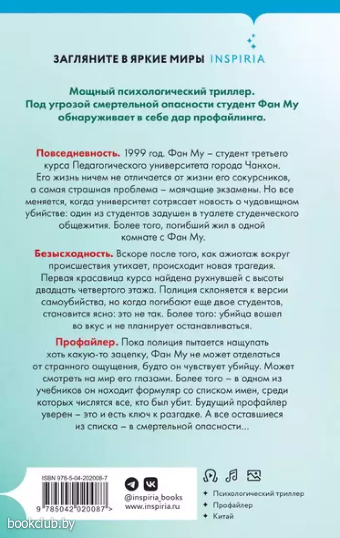 Профайлер. Пока полиция пытается нащупать хоть какую-то зацепку, Фан Му не может отделаться от странного ощущения, будто он чувствует убийцу. Может смотреть на мир его глазами. Более того – в одном из учебников он находит формуляр со списком имен, среди которых числятся все, кто был убит. Будущий профайлер уверен – это и есть ключ к разгадке. А все оставшиеся из списка – в смертельной опасности…