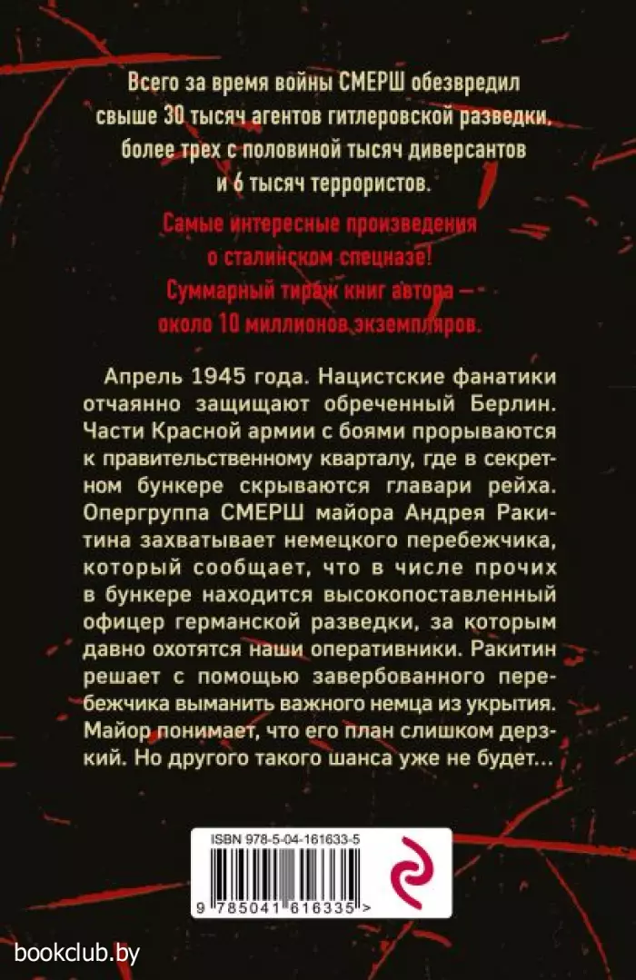 Книги издательства «ЭКСМО» из серии «Солдаты СМЕРШ. Романы о неизвестных боях» - отличное приобретение для вас и ваших близких. Для вашего удобства при оформлении заказа по телефону назовите код товара: