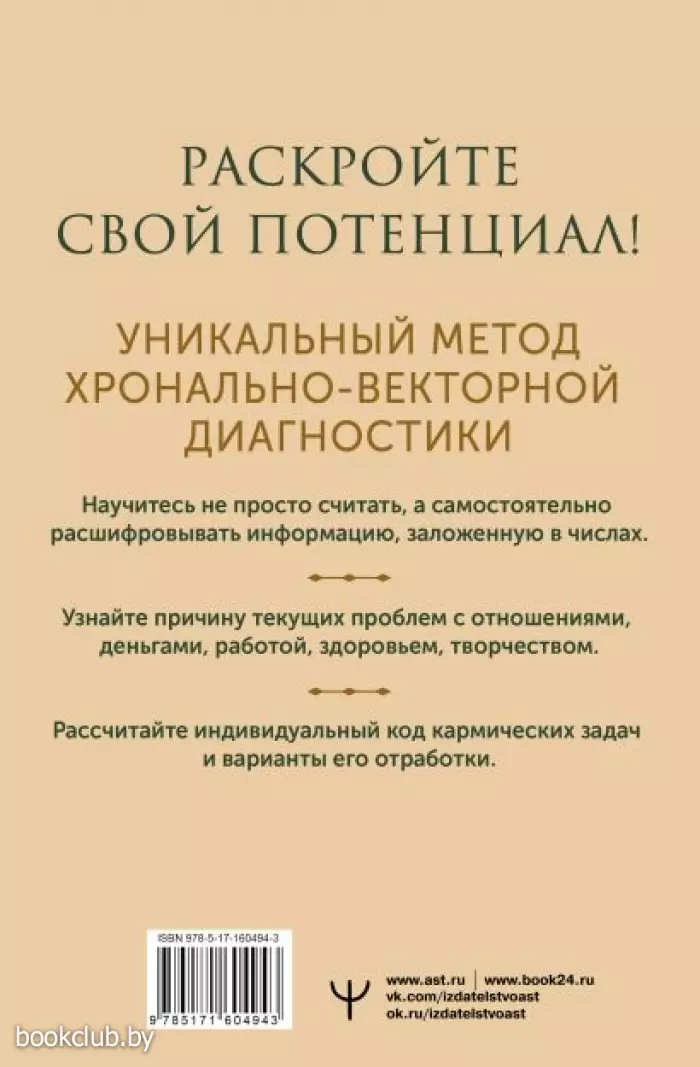Книга посвящена уникальному методу хронально-векторной диагностики (ХВД) — подходу в нумерологии и биоэнергетике, который уже доказал свою эффективность. Уникальность метода — максимально точные расчеты, которые дадут информацию именно по вашей судьбе, здоровью и кармическим задачам. Он выявляет сильные и слабые стороны каждого конкретного человека, энергетическую емкость чакр.