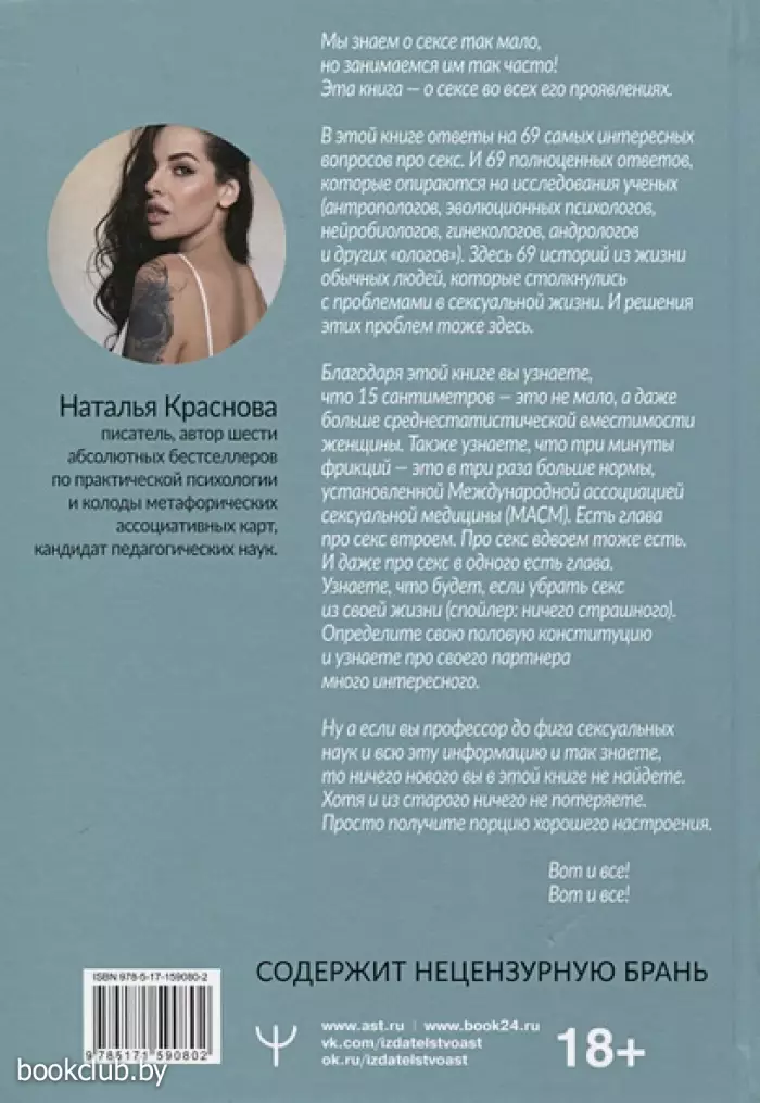Книга от автора бестселлеров по женской психологии Натальи Красновой обстоятельно, в деталях и, конечно, с юмором ответит на все самые сокровенные и насущные вопросы о сексе, которыми так или иначе задаются все, но до сих пор стесняются спросить или гуглят украдкой. Стыдно, неловко, да и зачем, если «и так все понятно».
