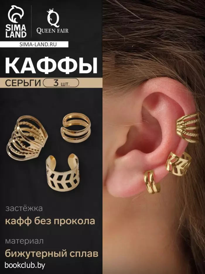 Серьги каффы «Узор», набор 3 шт. цвет золото