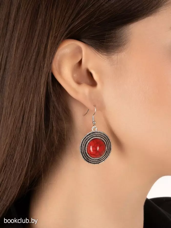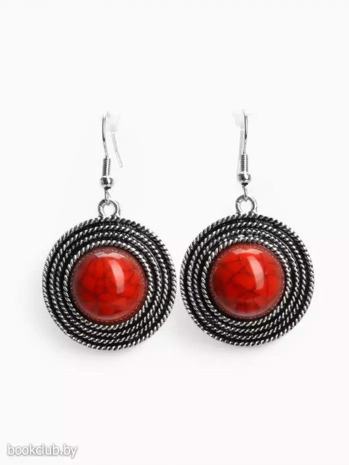 Серьги «Круг», винтаж, красные в чернённом серебре