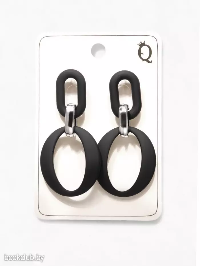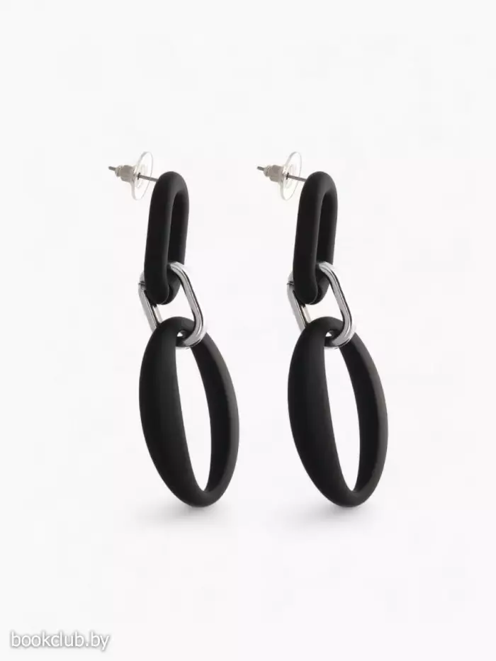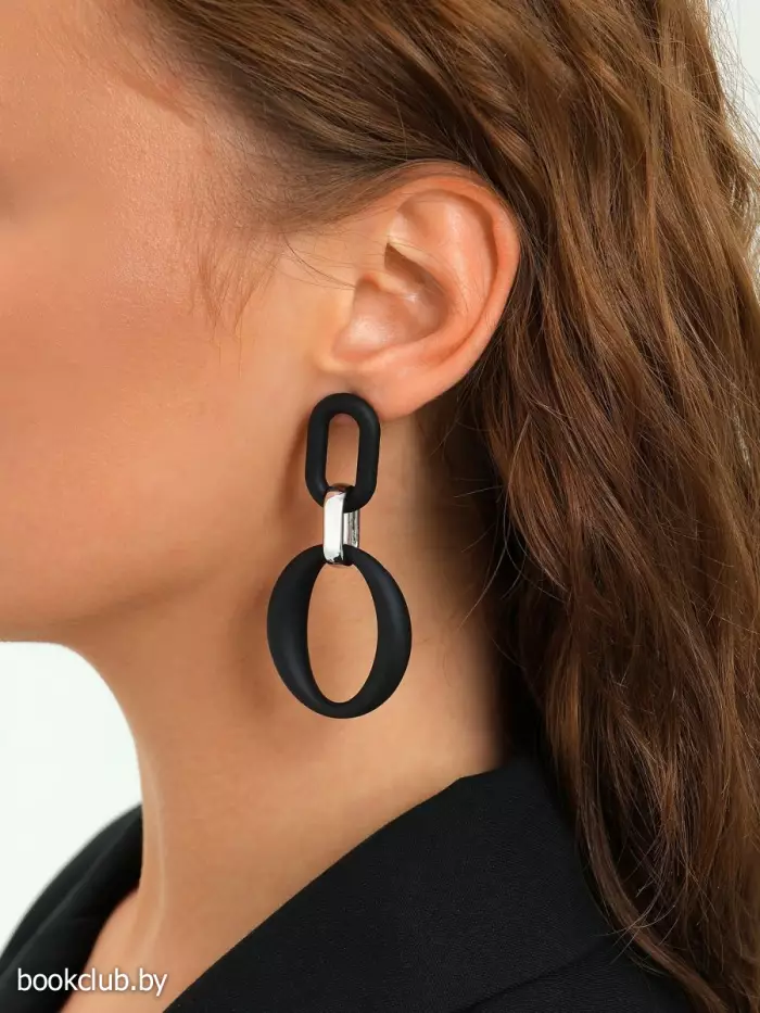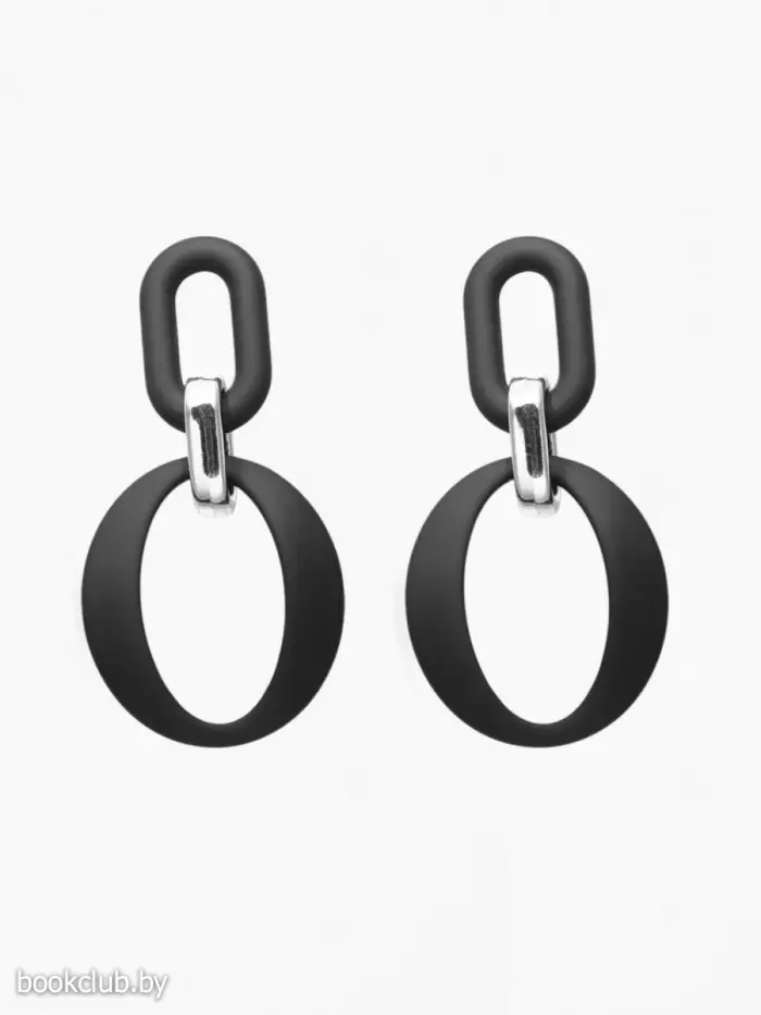 Серьги металл «Цепь», кольцо и овал, 3 звена, серебристо-чёрные