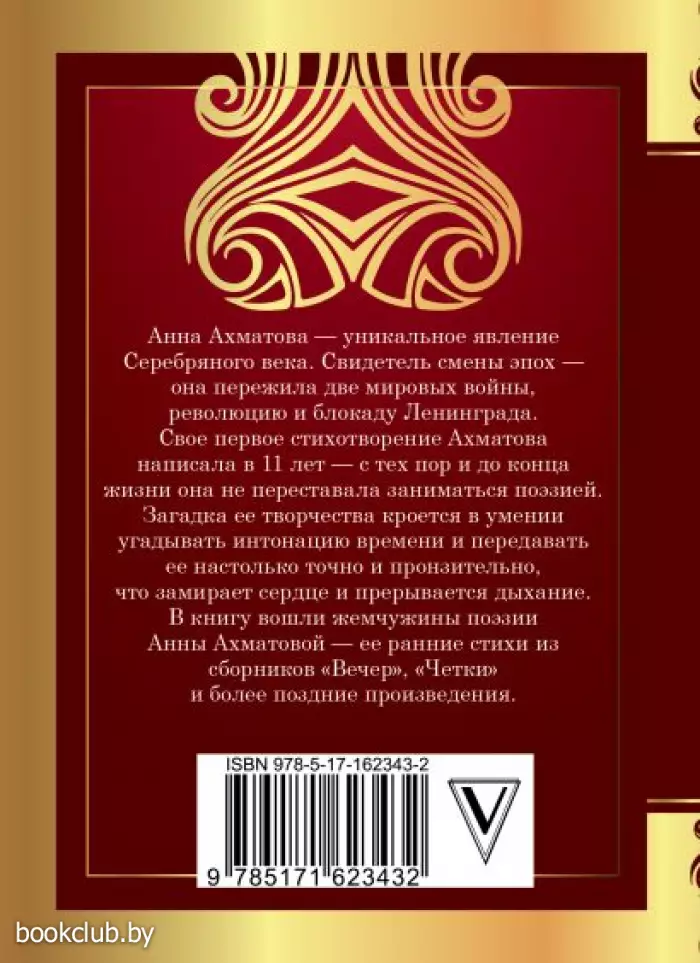 В книгу вошли жемчужины поэзии Анны Ахматовой — ее ранние стихи из сборников "Вечер", "Четки" и более поздние зрелые произведения.