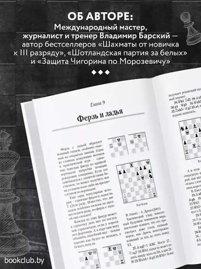 Международный мастер, журналист и тренер Владимир Барский — автор множества шахматных бестселлеров, включая "Шахматы от новичка к III разряду", "Шотландская партия за белых" и "Защита Чигорина по Морозевичу". Его новая книга — полный сборник матовых комбинаций!