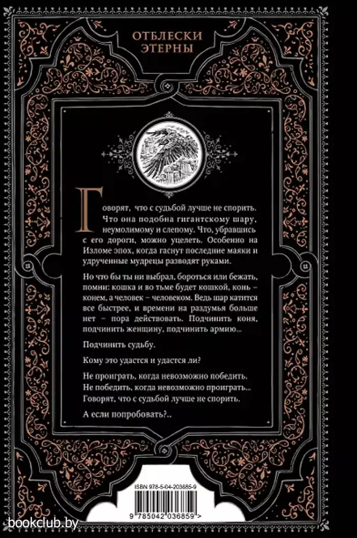 Говорят, с судьбой лучше не спорить. Говорят, судьба подобна гигантскому шару, неумолимому и слепому. Говорят, убравшись с его дороги, можно уцелеть. Вместо тебя сметет других — судьба неумолима и непостижима, тем паче на Изломе эпох, когда гаснут последние маяки и удрученные мудрецы разводят руками. Только кошка и во тьме будет кошкой, конь — конем, а человек — человеком, если только не станет нелюдью, а это так просто. Оскорбленная любовь и оскорбленная гордость, разбитое сердце и разбитые надежды порождают чудовищ, вот и гадай, что вернее убьет — ложь или правда, и кто подставит плечо — старый друг, потомственный враг или никчемный щеголь? А Шар катится все быстрее, и времени на раздумья больше нет — пора действовать. Подчинить коня, подчинить женщину, подчинить армию… Подчинить судьбу. Кому это удастся, и удастся ли? Не проиграть, когда победить невозможно. Не победить, когда невозможно проиграть…Говорят, с судьбой лучше не спорить… А если попробовать? Хуже уж точно не будет. Роман «Шар судеб» завершает вторую трилогию цикла «Отблески Этерны» — трилогию Скал. Продолжение цикла фэнтези-романов Веры Камши «Отблески Этерны». Первый роман стал литературным первоисточником киноадаптации «Этерна. Часть первая». «Отблески Этерны» называют «лучшим образчиком исторического фэнтези на всем постсоветском пространстве». По масштабу цикл может посоревноваться с романами Александра Дюма и Генрика Сенкевича. Книги издательства «ЭКСМО» из серии «Отблески Этерны» - правильный выбор и отличное приобретение. Для вашего удобства при оформлении заказа по телефону назовите код товара: 417082