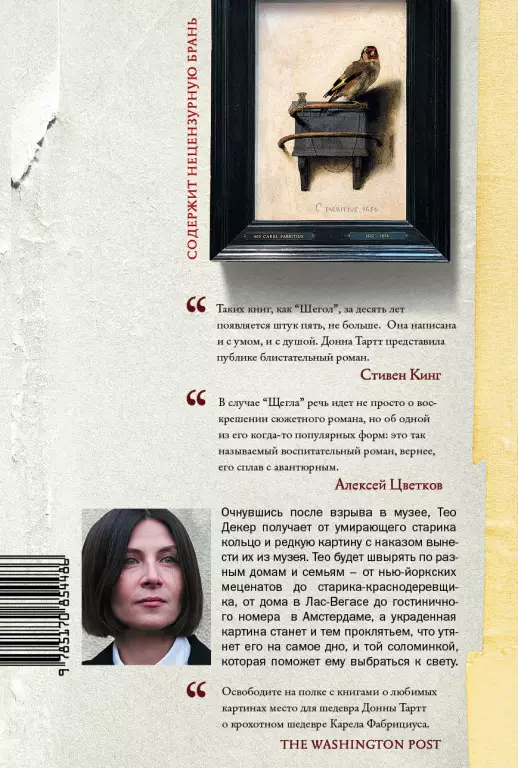 Роман, который лауреат Пулитцеровской премии Донна Тартт писала более 10 лет, – огромное эпическое полотно о силе искусства и о том, как оно – подчас совсем не так, как нам того хочется – способно перевернуть всю нашу жизнь. 13-летний Тео Декер чудом остался жив после взрыва, в котором погибла его мать. Брошенный отцом, без единой родной души на всем свете, он скитается по приемным домам и чужим семьям – от Нью-Йорка до Лас-Вегаса, – и его единственным утешением, которое, впрочем, чуть не приводит к его гибели, становится украденный им из музея шедевр голландского старого мастера.