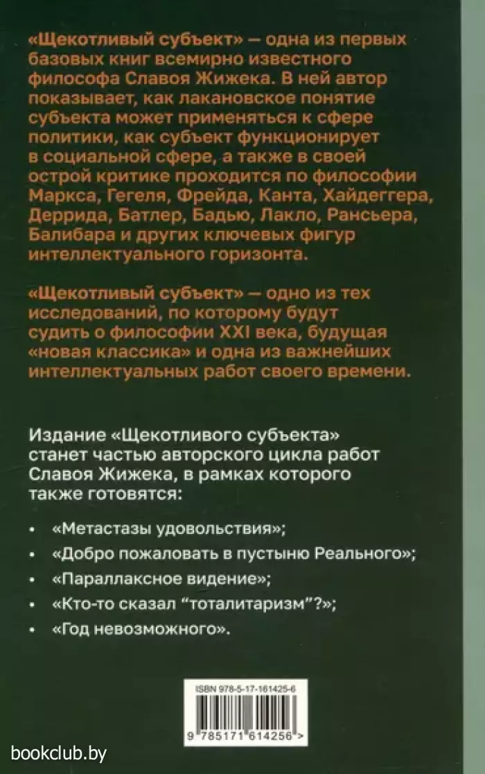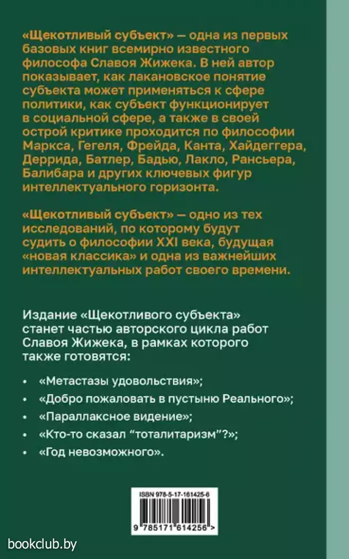 «Щекотливый субъект» — одно из тех исследований, по которому будут судить о философии XXI века, будущая «новая классика» и одна из важнейших интеллектуальных работ своего времени.