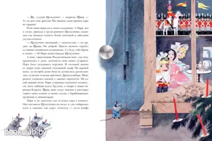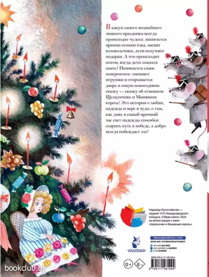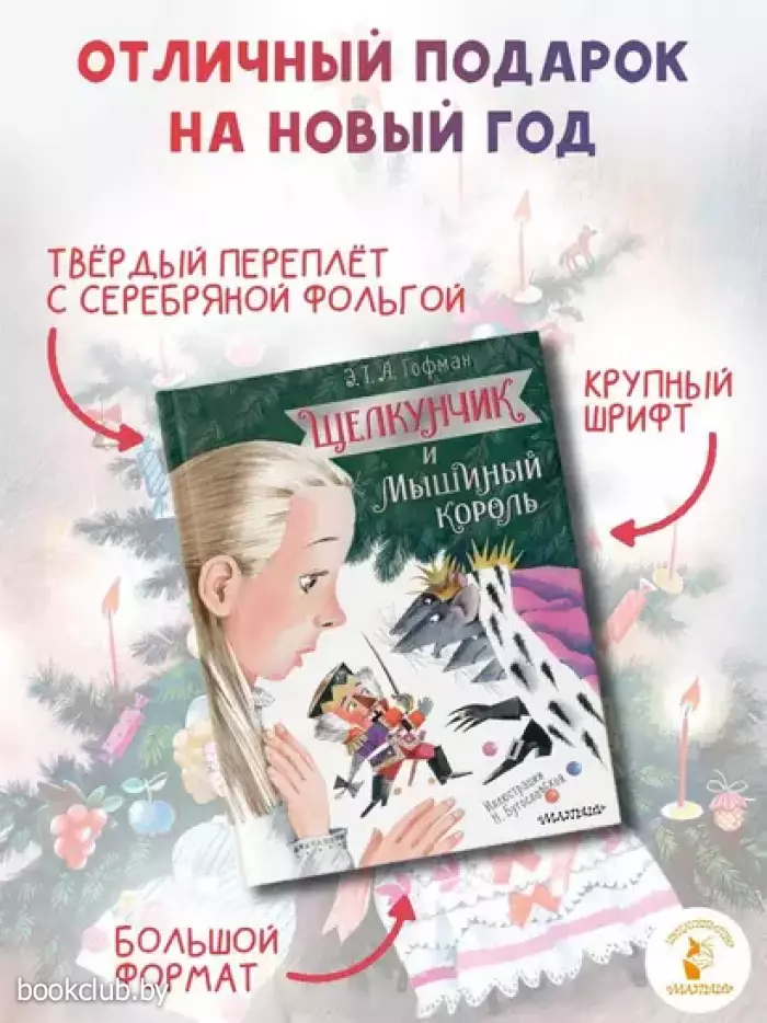 "Щелкунчик и Мышиный король" — это атмосфера праздника, волшебства и тайны. Классическая история Э.Т.А. Гофмана про отважную Мари, непоседливого Фрица, смелого Щелкунчика и страшного Мышиного короля захватывает читателей вот уже более 200 лет! Великолепные, атмосферные, яркие иллюстрации Надежды Бугославской перенесут вас в мир чудес. Надежда Бугославская — лауреат Всероссийского конкурса "Образ книги" (2024) за иллюстрации к этому произведению.