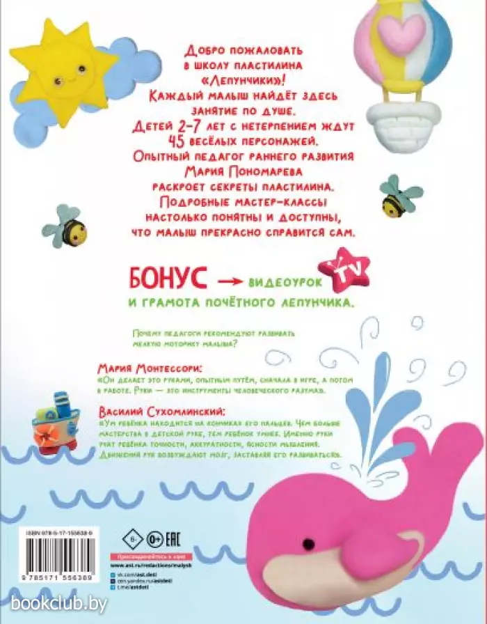 Почему все детские центры и курсы подготовки к школе обязательно включают в свои программы пластилин? Занятия лепкой не только увлекательны, но и очень полезны. Это универсальный и максимально эффективный тренажер для развития мелкой моторики рук, глазомера, мышления, памяти, фантазии, мозга в целом! Без особых усилий концентрируется внимание, ребенок становится более усидчивым, причем без применения вредных гаджетов, выплескиваются негативные эмоции. В этой книге опытный педагог и директор онлайн-школы пластилина «Лепунчики» Мария Пономарева раскроет секреты обучения навыку лепки детей от 2 до 5-6 лет. Начиная с простых и эффектных поделок, ребенок шаг за шагом освоит все приемы, получит эстетическое удовольствие и переживет ситуацию успеха. Подробные фото мастер-классов настолько понятны и доступны, что малыш прекрасно справится сам. В финале маленького самоделкина ждет сюрприз – диплом Школы пластилина и видеовстреча с волшебной учительницей.