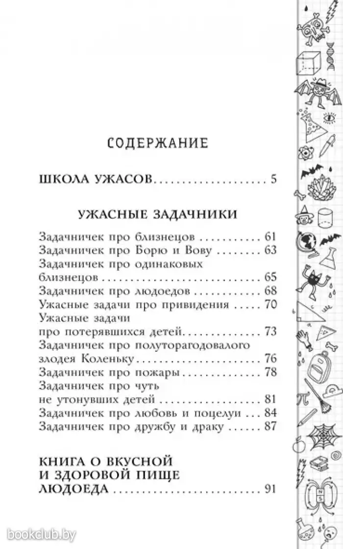 Если на вашем пути в школу встретились людоеды, не теряйтесь — потребуйте, чтобы они перед едой помыли руки! Если в вашей школе учительница физкультуры — ведьма, никому не рассказывайте, а попросите её покатать вас на метле. Ну а уж если из косточки решили выращивать неизвестно что, не обижайтесь на того, кто вырастет, — даже если оно начнёт вас есть! В школе и даже дома ребёнку надо быть готовым ко всему — есть вещи пострашнее танцующего скелета и демона учёбы!