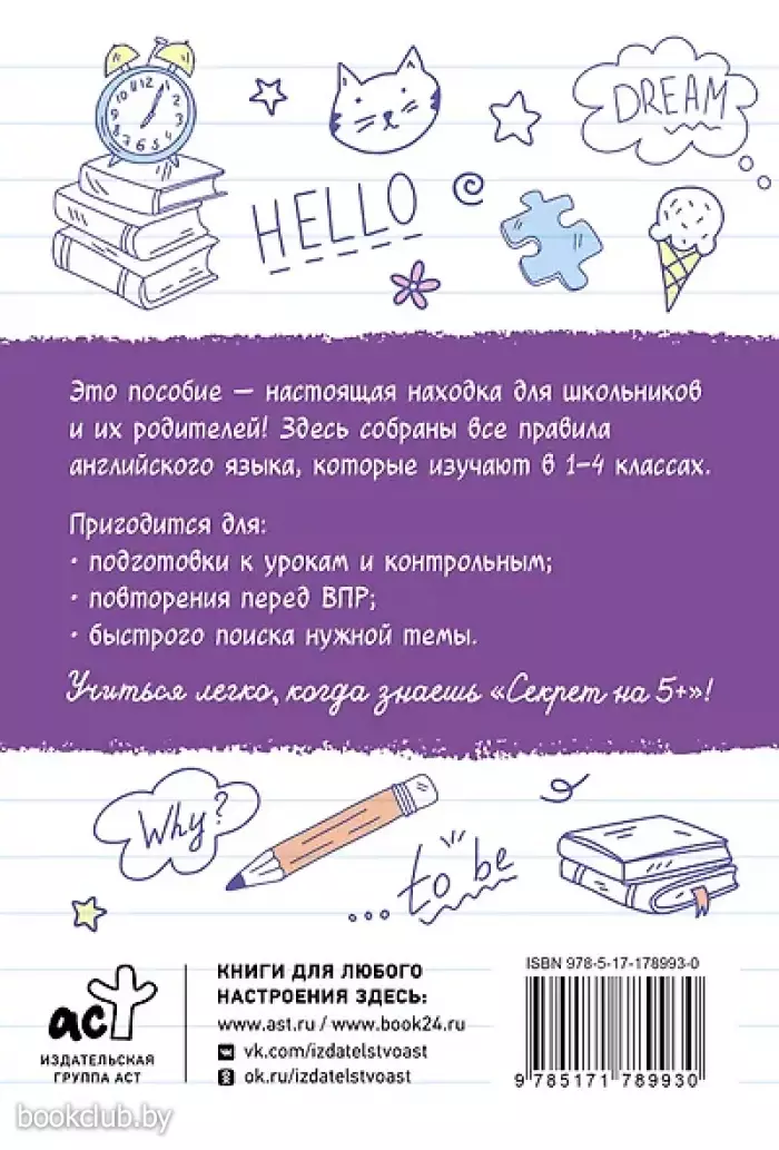 Книга от издательства «АСТ», входящая в серию «Секрет на 5+», принесет массу положительных впечатлений от прочтения и займет достойное место в вашей библиотеке. Для вашего удобства при оформлении заказа по телефону назовите код товара: 415932