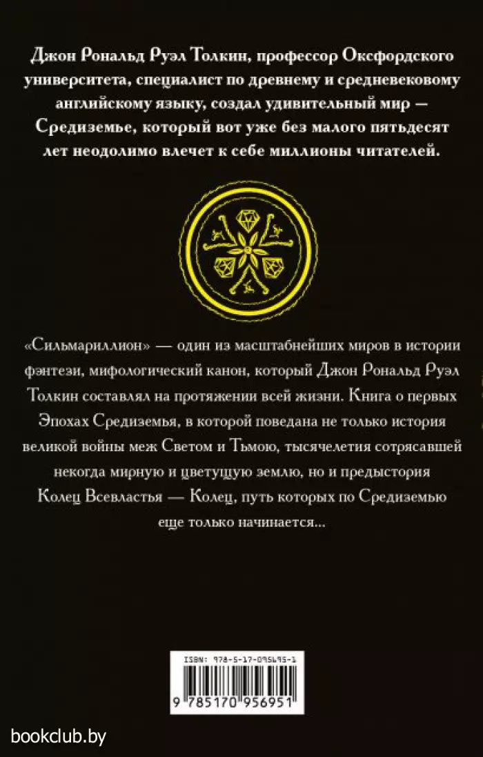 "Сильмариллион" – один из масштабнейших миров в истории фэнтези, мифологический канон, который Джон Руэл Толкин составлял на протяжении всей жизни. Книга о первых Эпохах Средиземья, в которой поведана не только история великой войны меж Светом и Тьмою, тысячелетия сотрясавшей некогда мирную и цветущую землю, но и предыстория Колец Всевластья -- Колец, путь которых по Средиземью еще только начинается...