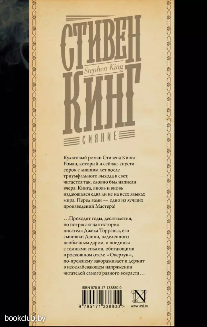… Проходят годы, десятилетия, но потрясающая история писателя Джека Торранса, его сынишки Дэнни, наделенного необычным даром, и поединка с темными силами, обитающими в роскошном отеле «Оверлук» , по-прежнему завораживает и держит в неослабевающем напряжении читателей самого разного возраста… Встречайте культовый роман Стивена Кинга — в новом переводе!