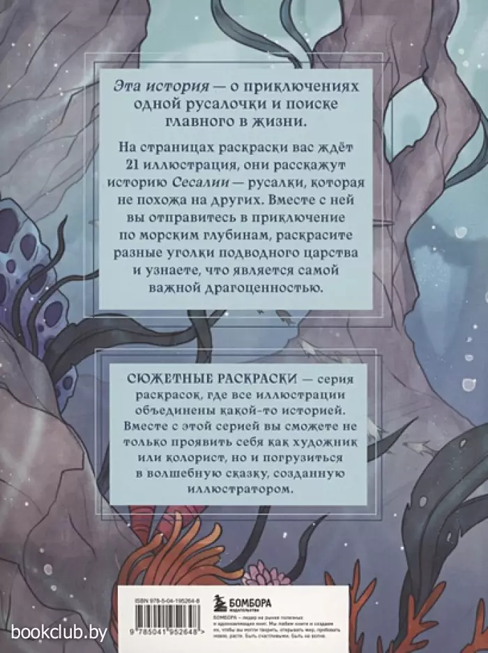Погрузитесь в магию подводного мира вместе с этой раскраской! На ее страницах вы сможете оживить удивительную историю необычной русалочки Сесалии. Все иллюстрации связаны единым повествованием: раскрашивая один рисунок за другим, вы сможете воссоздать большое приключение, которое однажды случилось в подводном царстве. Берите маркеры, цветные карандаши и другие любимые материалы и создайте свою версию этой волшебной истории прямо сейчас!