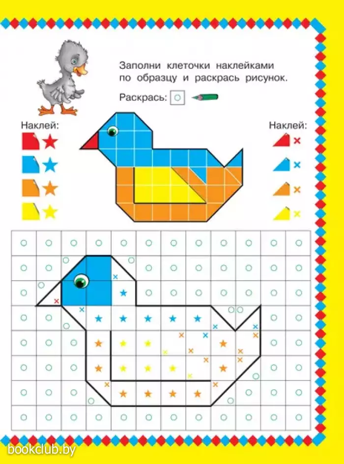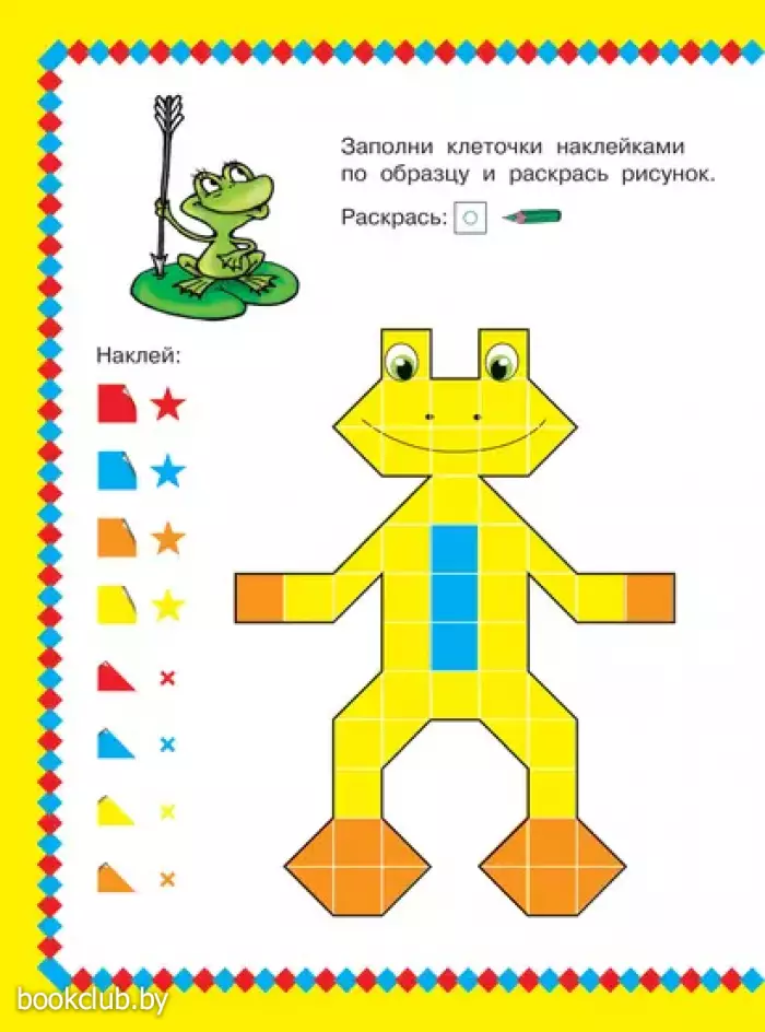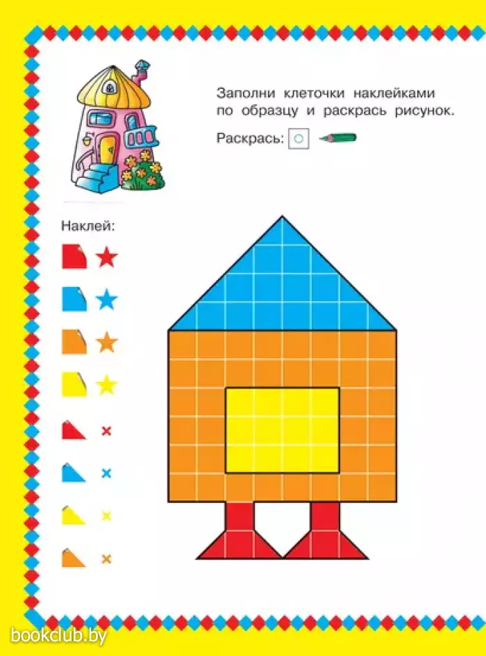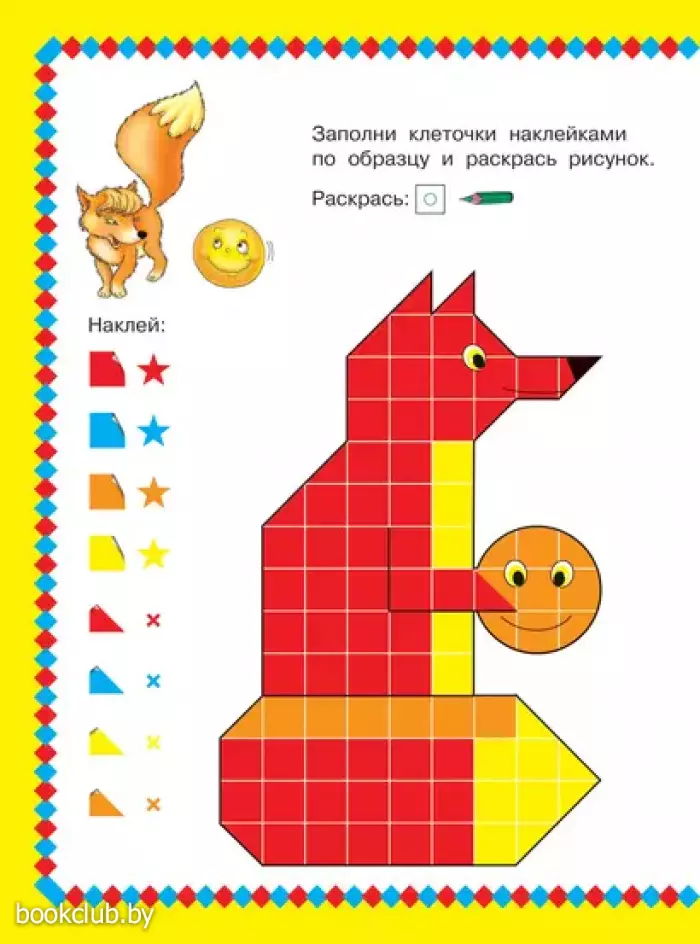 Раскраска со стикерами "Сказки" поможет ребёнку-дошкольнику развить воображение, потренировать мелкую моторику, проявить творческие способности. На страницах книги — образцы рисунков, а также наклеечные поля, на которых малыш, ориентируясь по символам-подсказкам, будет создавать красочные картинки с любимыми сказочными героями. "Раскрашивать" рисунки стикерами можно одному, а можно с друзьями или взрослыми.
