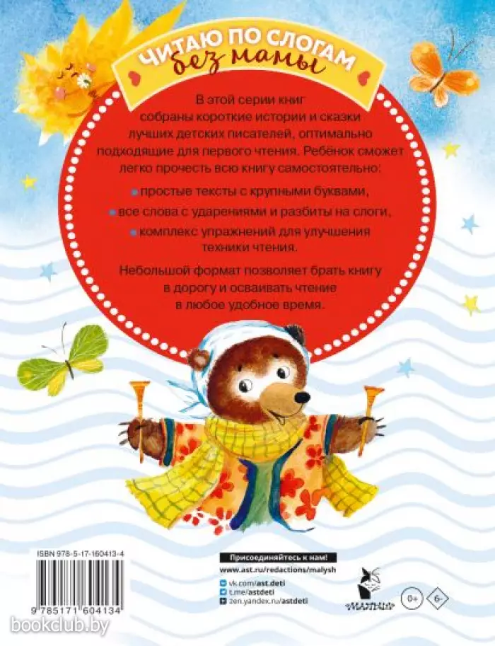 Как помочь малышу научиться читать? Очень важно, чтобы первое знакомство с книгой было успешным, понравилось малышу и помогло ему полюбить литературу. Серия «Читаю без мамы по слогам» — отличный вариант для обучения чтению. Яркие иллюстрации, произведения лучших детских авторов и увлекательные упражнения сделают занятия не только полезными, но и увлекательными. Слова по слогам и с ударениями позволят малышу самостоятельно познакомиться с историями из золотого фонда мировой литературы. В этой книге собраны маленькие сказки С. Козлова, М. Пляцковского, Г. Остера и других любимых детских писателей, которые не дадут малышу заскучать или переутомиться. Книга станет отличным подарком для вашего сына или дочки.